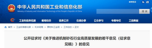 為明確機制砂石產業方向,引導機制砂石行業優化發展布局,促進機制砂石行業高質量發展,受工業和信息化部委托,中國砂石協會組織專家編制了《關于推進機制砂石行業高質量發展的若干意見(初稿)》。日前,中華人民共和國工業和信息化部原材料工業司發布《關于推進機制砂石行業高質量發展的若干意見(征求意見稿)》,并公開征求意見。